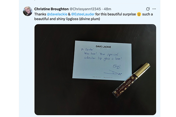 Sept5 – Branka S won the beautiful Lauder lipstick on X