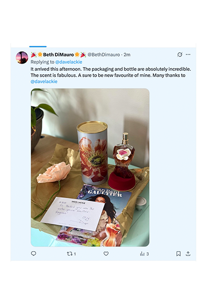 May11 – Beth D from Bolton won the gorgeous Jean Paul Gaultier La Belle Flower Edition fragrance on my blog
