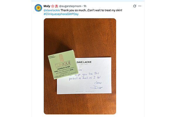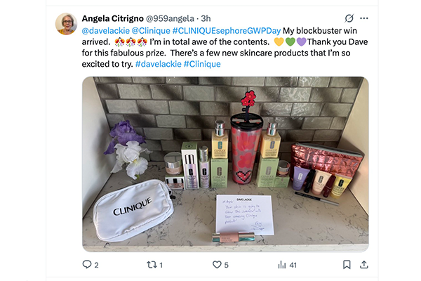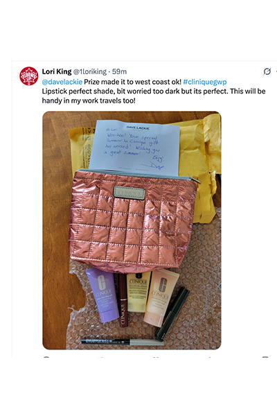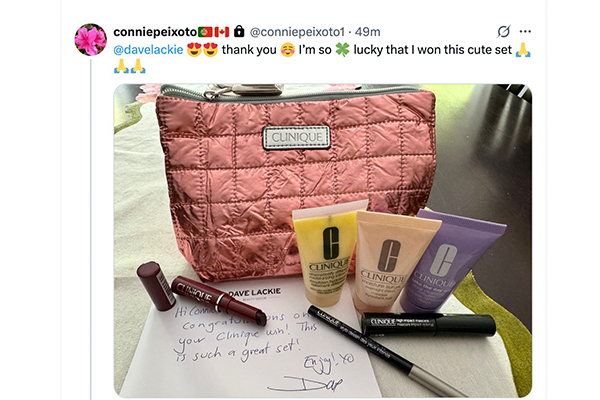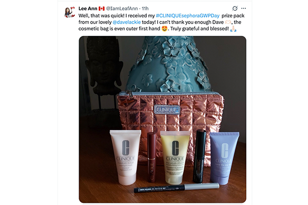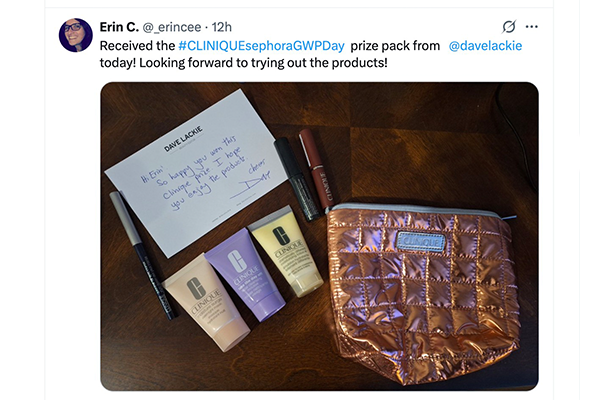 May30 – Erin C won a Clinique GWP set at Sephora on X