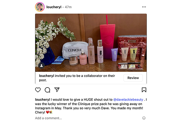 April3 – Maxine R won the Clinique GWP set on Instagram. Congrats, Maxine