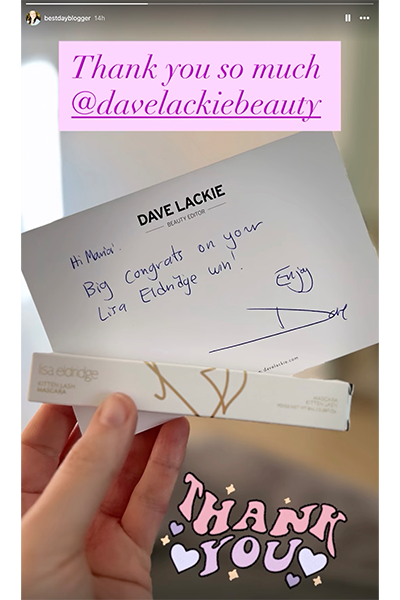 July2 – Maria M from PEI won the Lisa Eldridge mascara on Instagram