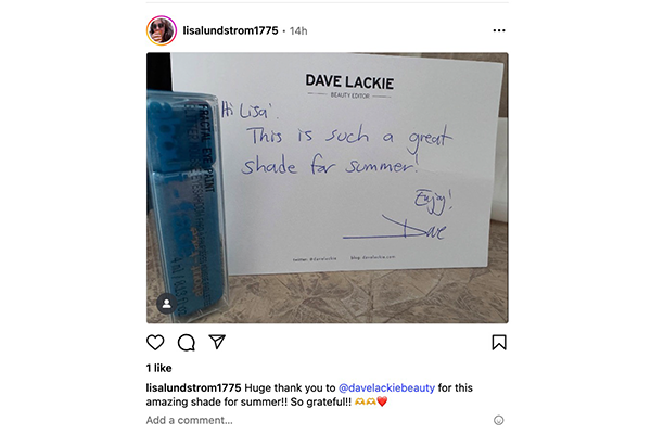 April29 – Justine R from Alberta won the Lisa Eldridge lip colour on Instagram